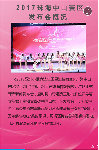 亚姐竞选作为国内最有影响力的赛事之一,珠海中山赛区主办单位,深感责任重大,经过半年多各团队的精心准备,终于要拉开帷幕和大家见面了。我们有信心把此次赛事办得更好,绚丽人生,我们帮您创造!